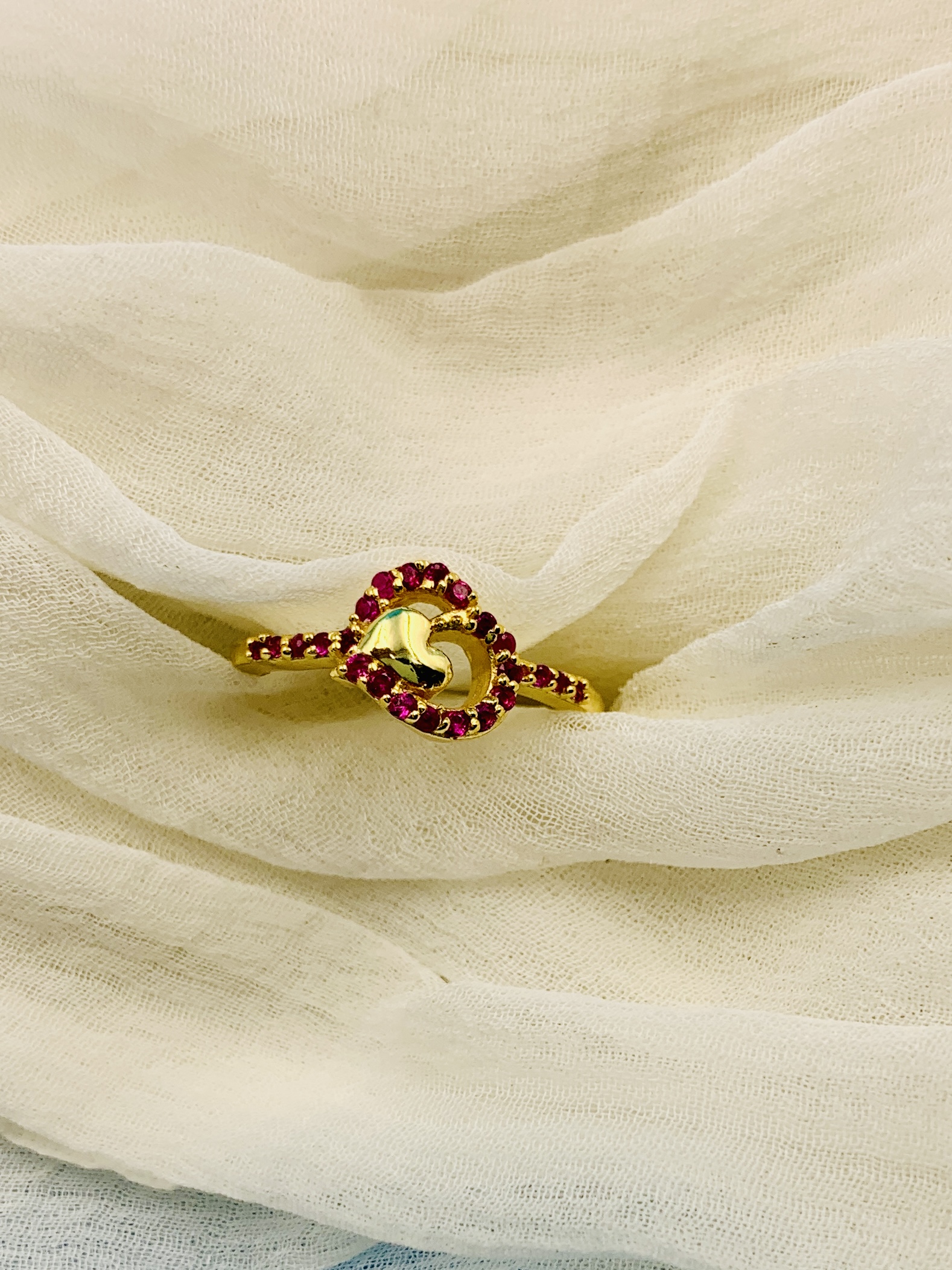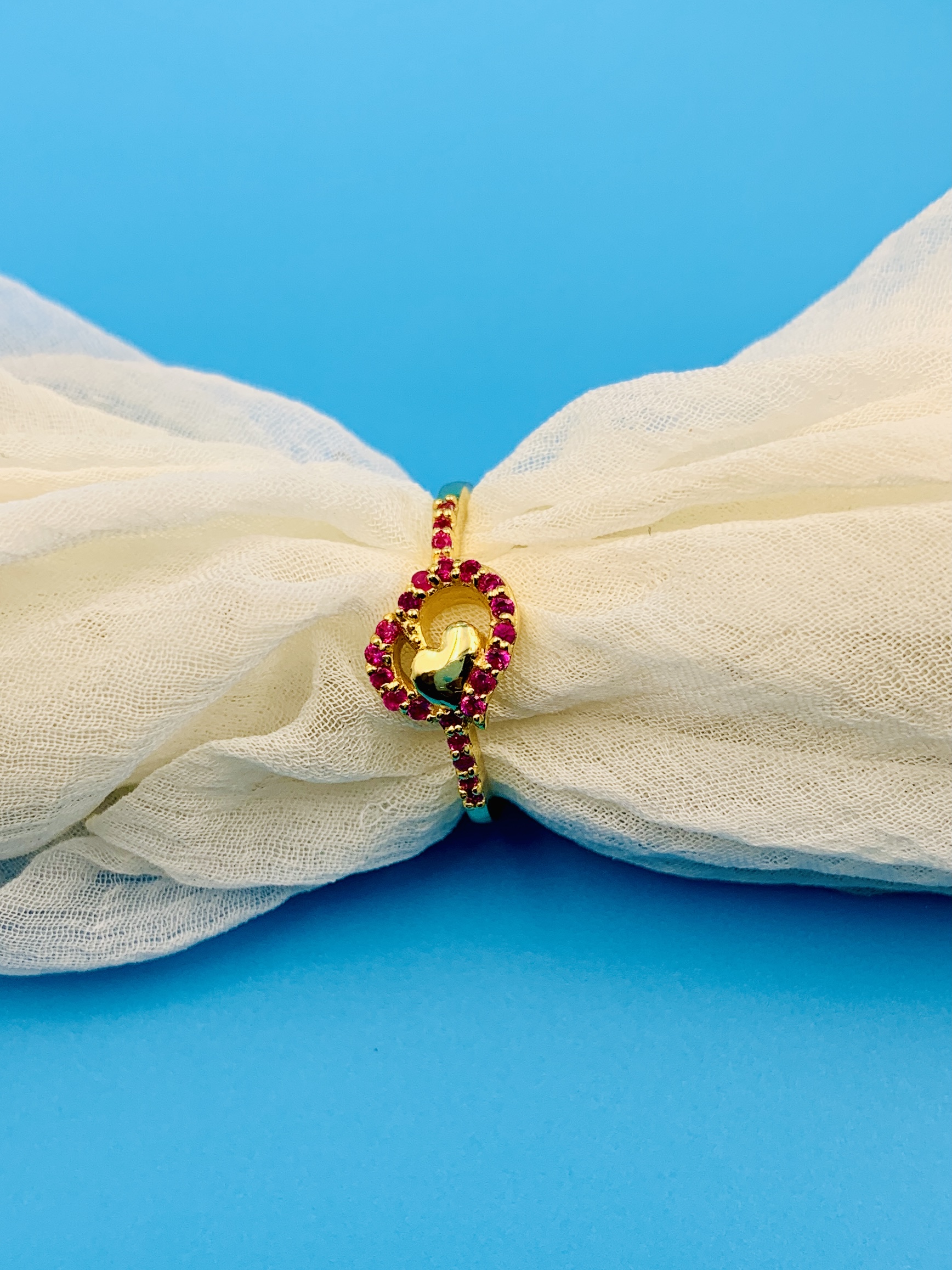 Charming gold-plated 925 silver heart ring adorned with sparkling pink cubic zirconia stones. Perfect for gifting, promises, or everyday wear.