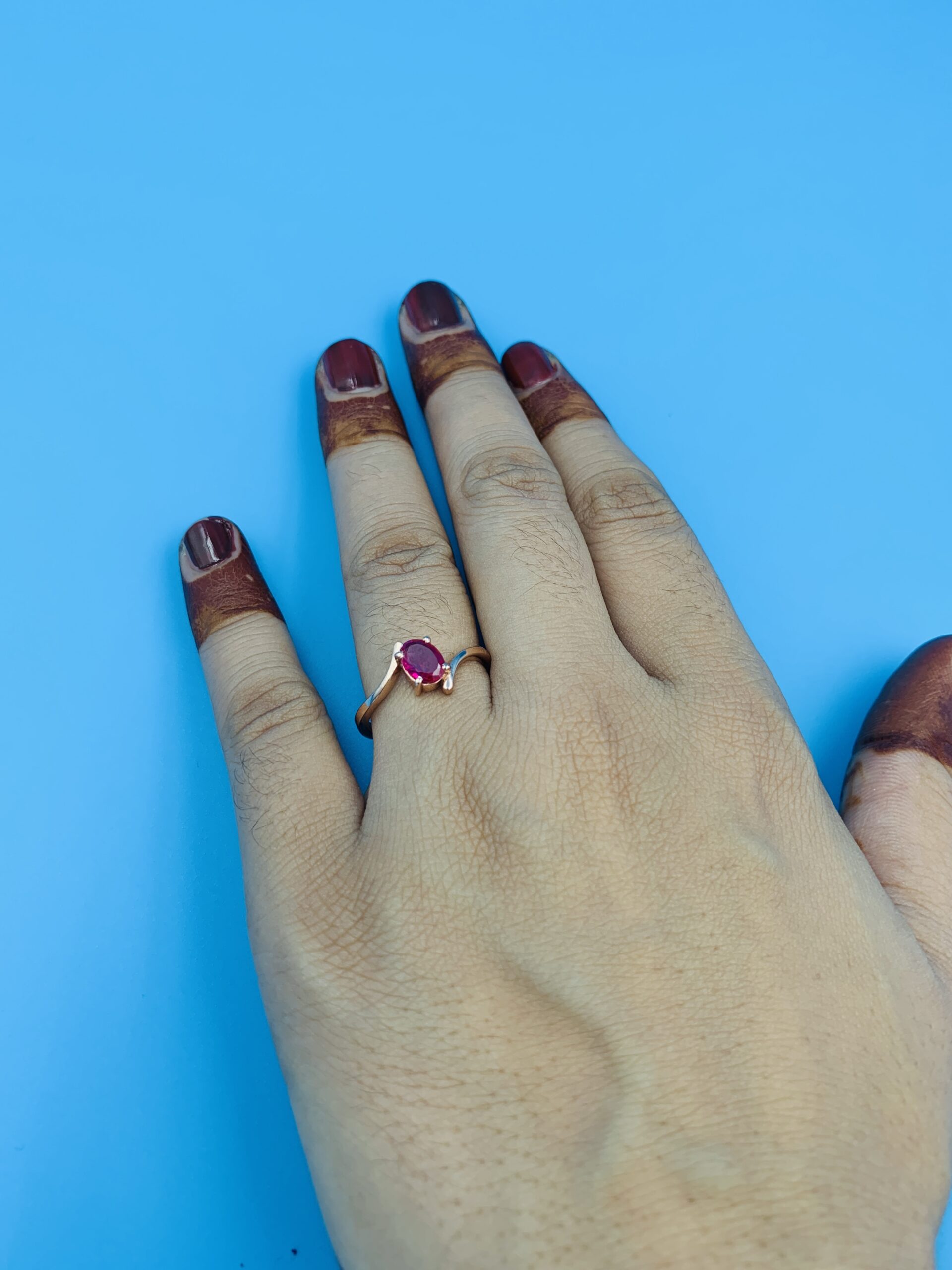 The bold red stone—set in a marquise/oval cut—radiates charm and sophistication, reminiscent of ruby’s timeless appeal. Whether worn solo or paired with other fine jewelry, this ring will be the highlight of your collection.