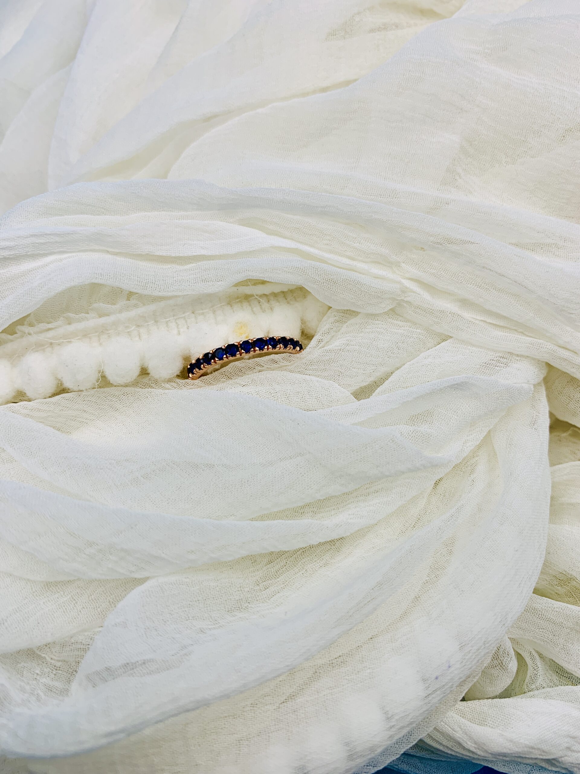 Be the first to review “Rose Gold Eternity Band with Blue Sapphire CZ Stones – Dainty Stacking Ring, 925 Silver Band for Women”