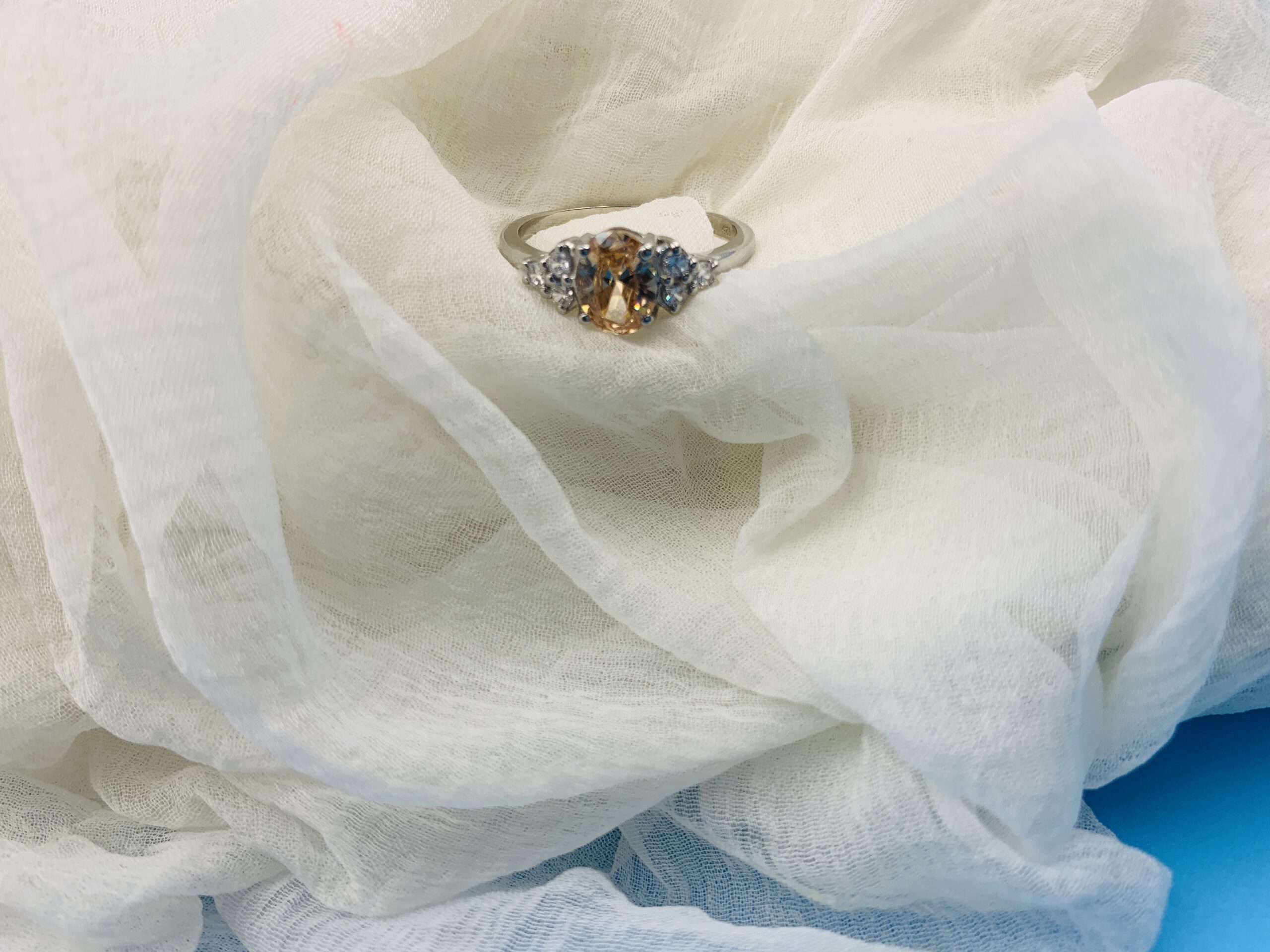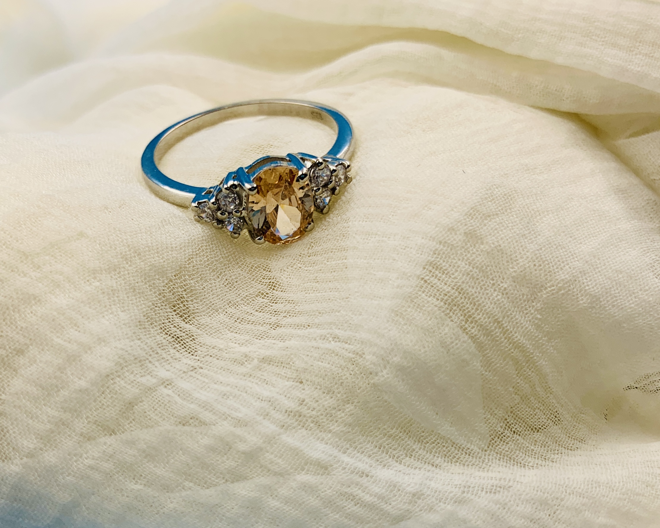 Stone: Peach Oval Cubic Zirconia (center)